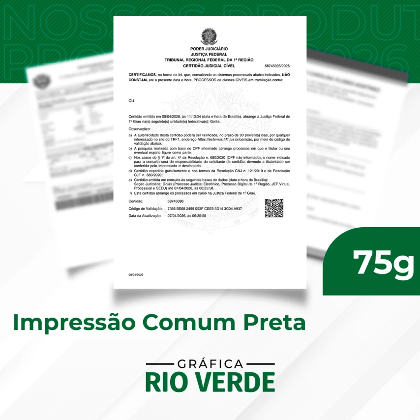 Impressão Comum A4 | Preto e BrancoMaterial: Papel A4Cores: PretoTamanho final: 21 x 29,7cm