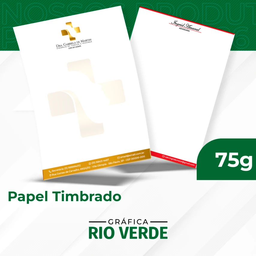 A Gráfica Rio Verde realiza a impressão de papel timbrado com agilidade e padronização, assegurando qualidade no resultado final e fidelidade à identidade visual da empresa. Uma solução funcional para quem busca organização, economia e profissionalismo na comunicação.