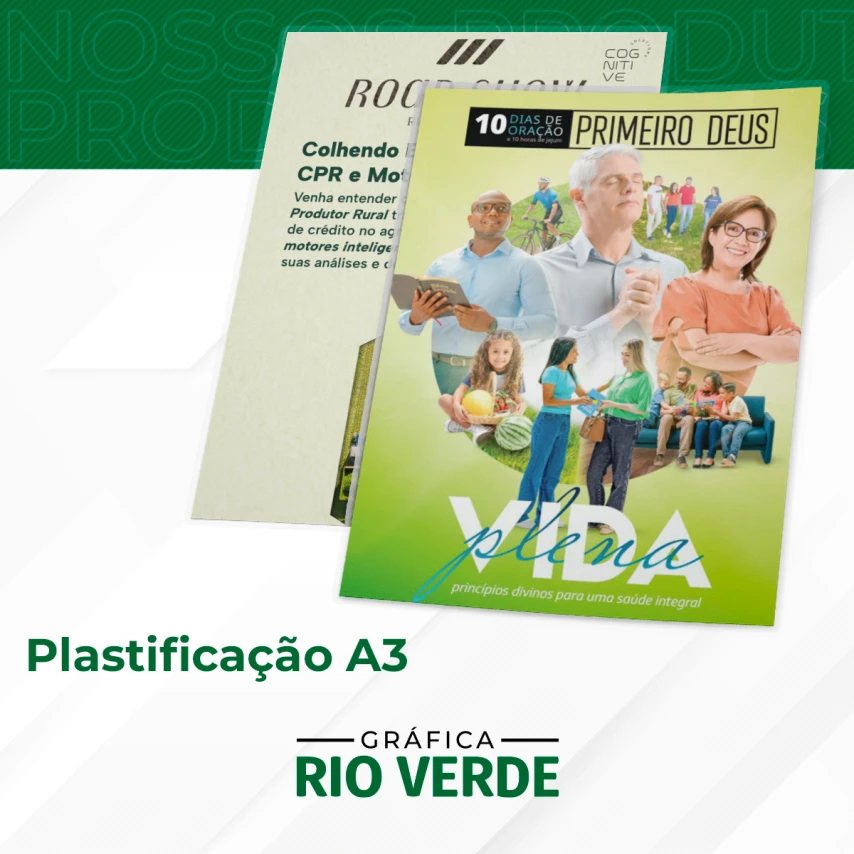 A Plastificação em Papel A3 (29,7x42 cm) é a escolha ideal para quem busca durabilidade, brilho e acabamento impecável. Perfeita para cartazes, comunicados, avisos, cardápios, certificados e materiais de divulgação que precisam resistir ao tempo e ao manuseio diário.
