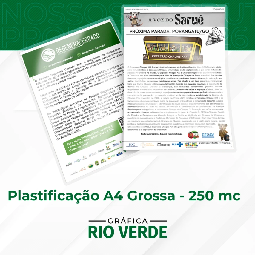 A Plastificação A4 Grossa 250 micras (21x29,7 cm) é a escolha ideal para quem busca máxima resistência, brilho e acabamento premium. Perfeita para comunicados, avisos, cardápios, certificados, tabelas, materiais escolares e documentos que precisam suportar o uso diário com mais durabilidade.